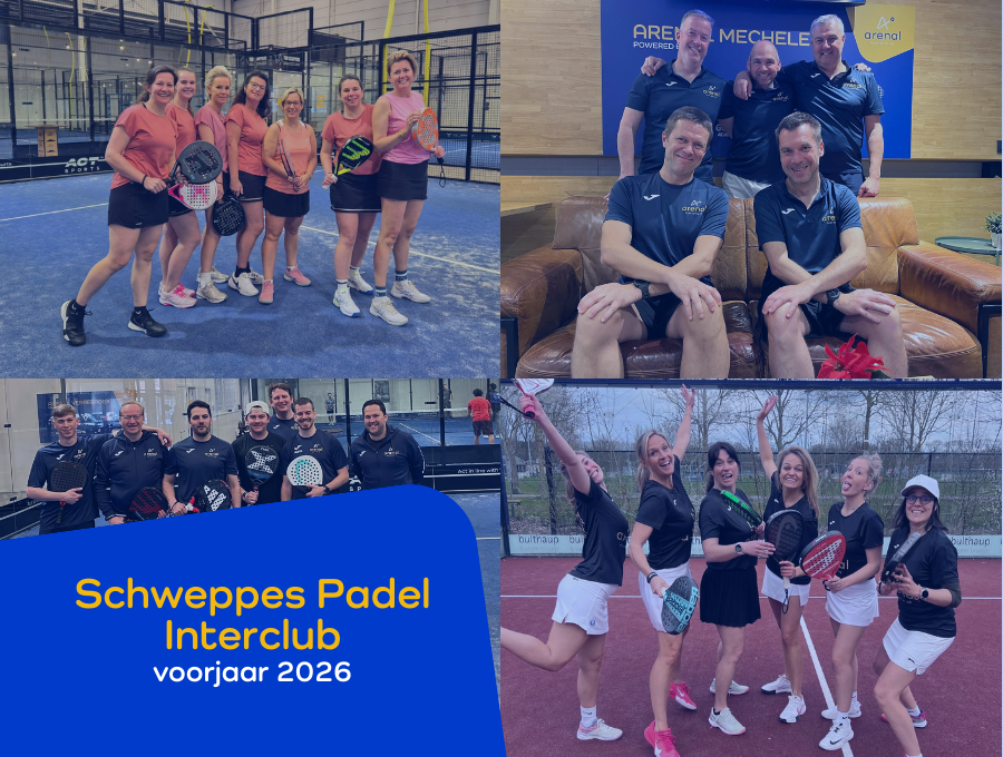 Verdedig komende lente de kleuren van Arenal - tijdens de Schweppes Padel Interclub 2026 - de officiële competitie van Padel Vlaanderen. Tijdens de meerdaagse interclub neem je het op tegen teams van andere clubs. De resultaten tellen mee voor de klassementsberekening.